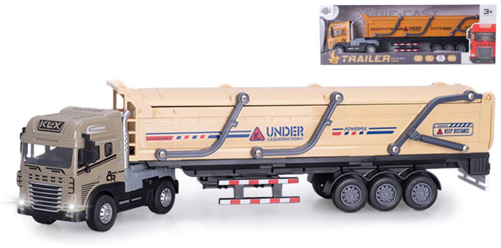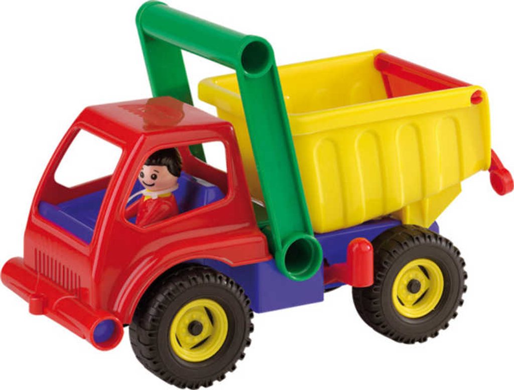 Aktivní auto sklápěč s kvalitního plastu a velmi pevnou stavbou o velikosti 29x14x19 cm. Je plně mechanicky funkční. Obsahuje pojistku proti nežádoucímu vyklopení, odklopitelnou kabinu s aktivním panáčkem.