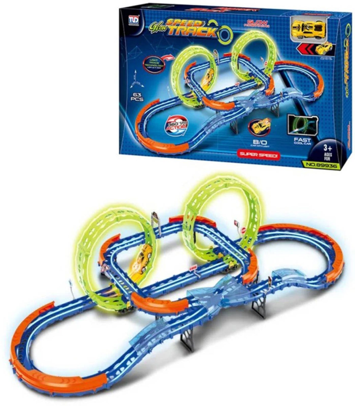 Autodráha svítící ve tmě (křížení, loop, auto; světlo, baterie)