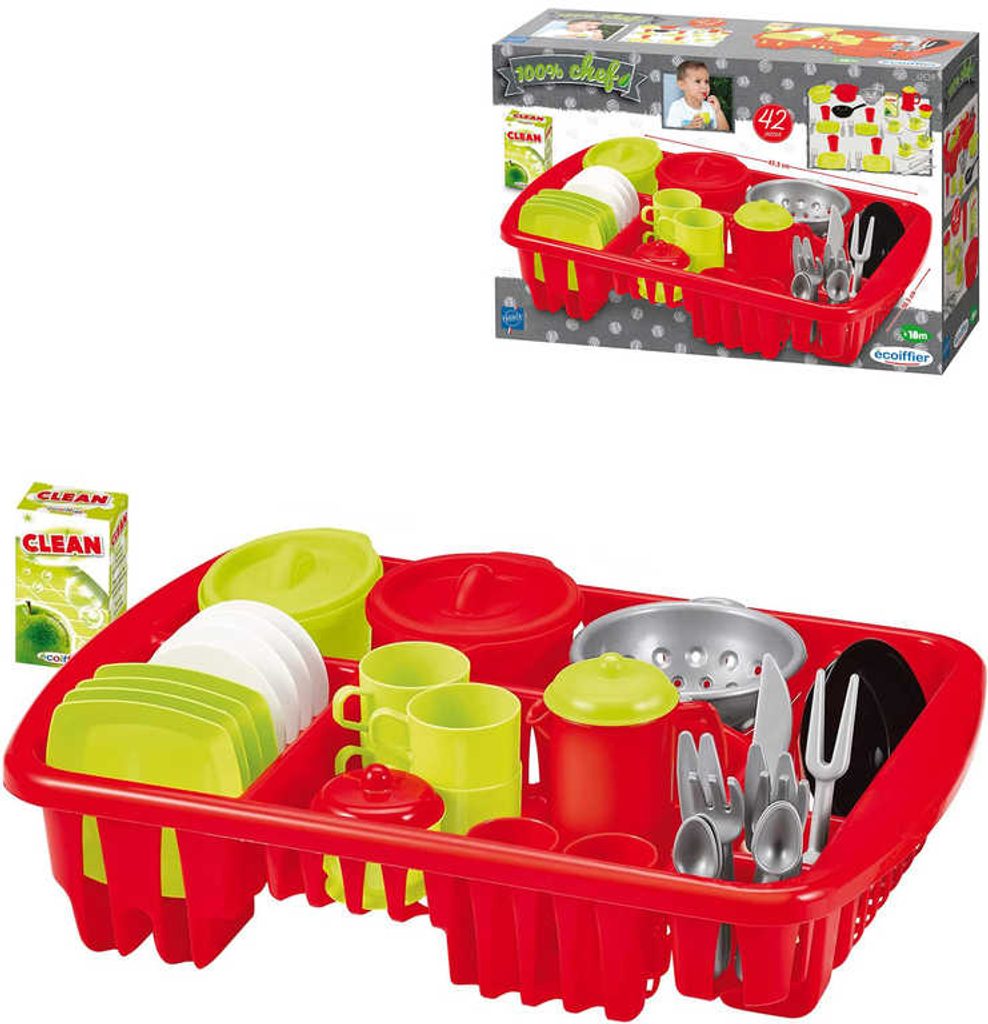 ECOIFFIER Sada baby dětské nádobí + odkapávač 42ks plast v krabici