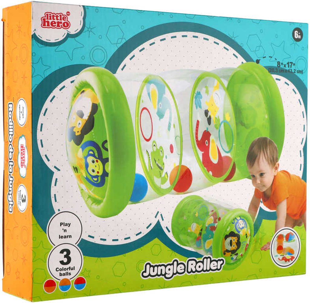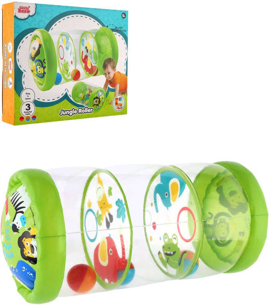 Válec baby nafukovací transparentní 43x20cm edukační set se 3 míčky pro miminko