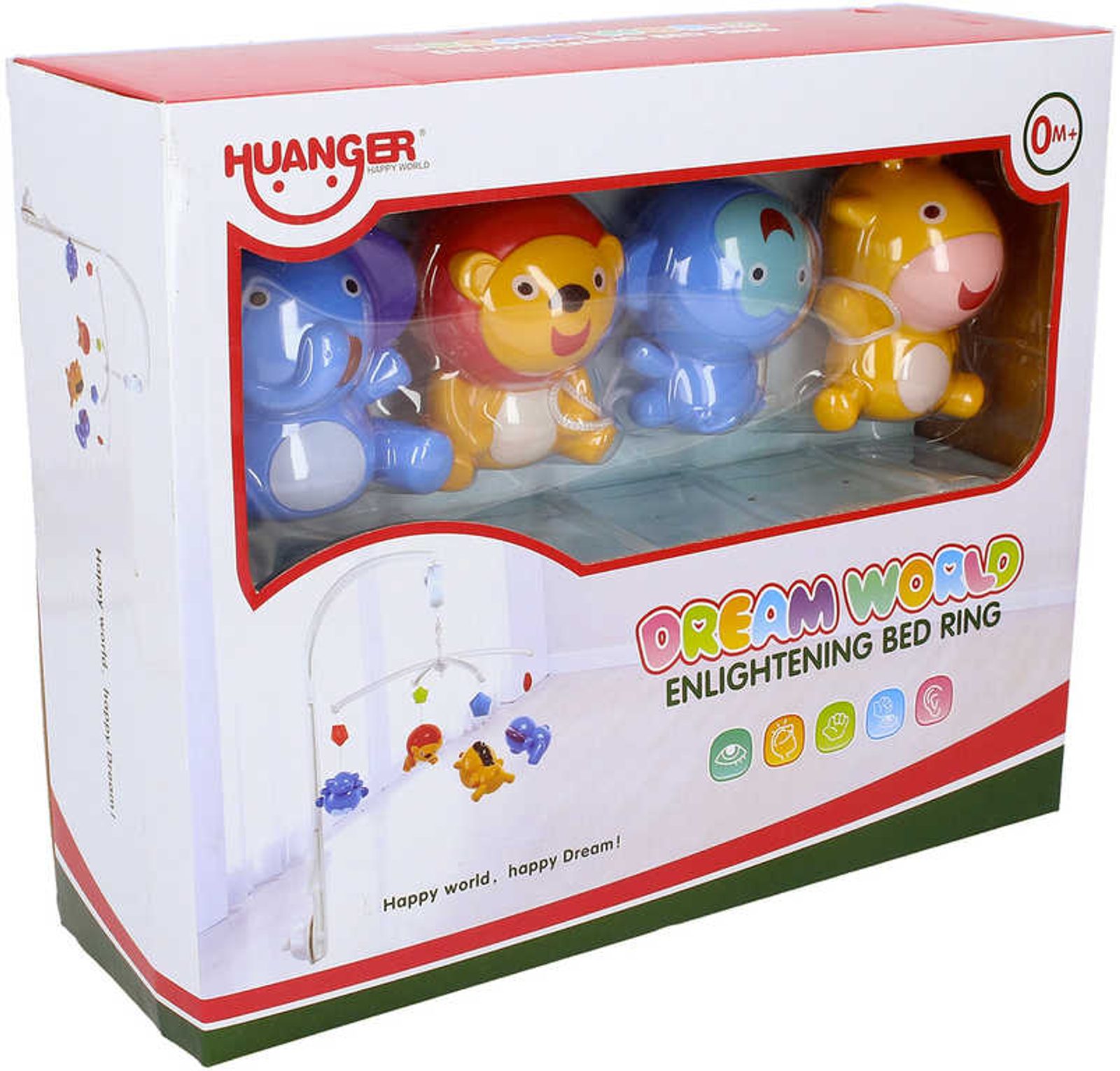 Baby kolotoč na postýlku s melodiemi na natažení se 4 zvířátky pro miminko Zvuk