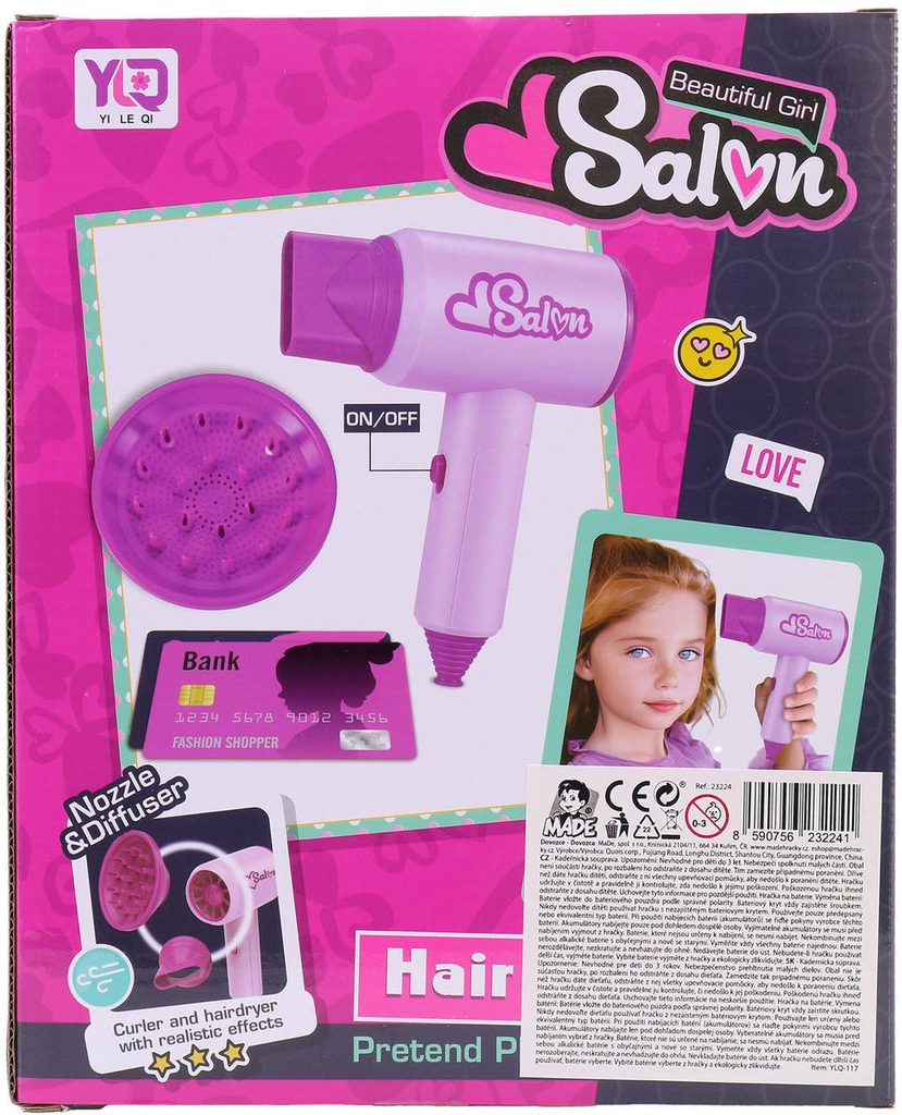 Kadeřnický dětský set funkční fén se dvěma nástavci na baterie