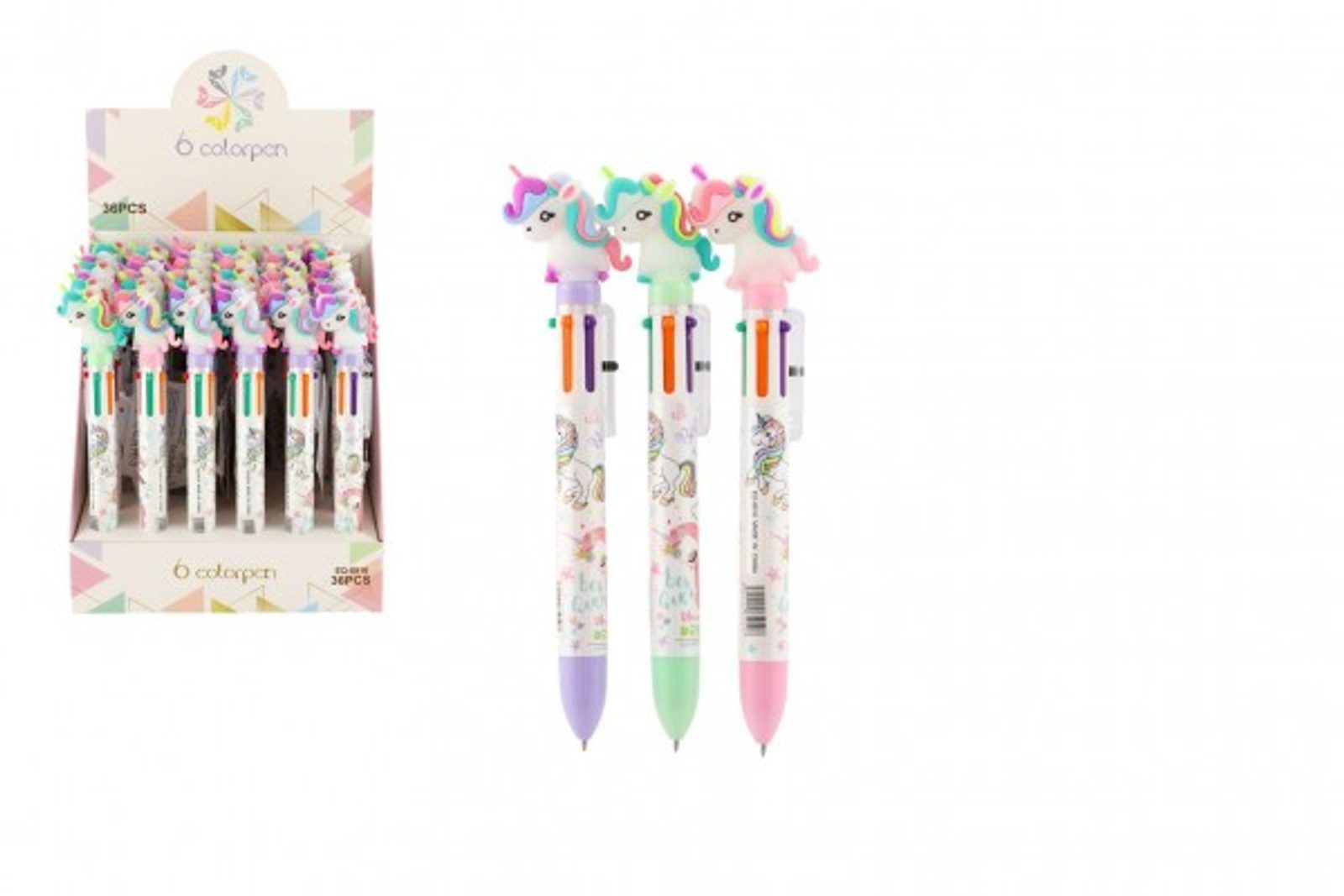 Nápadité barevné pero s motivem jednorožce, které nabízí 6 různých barevných náplní pro kreativní psaní a kreslení.