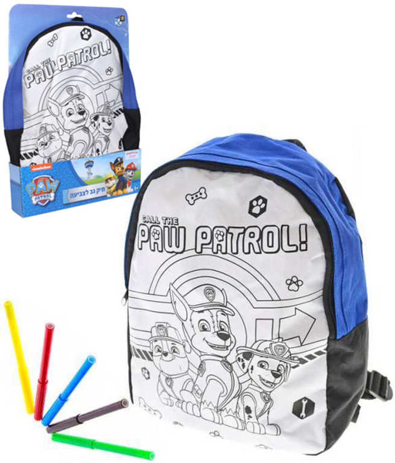 Batoh Tlapková Patrola 26x37cm vybarvovací set s 5 fixy