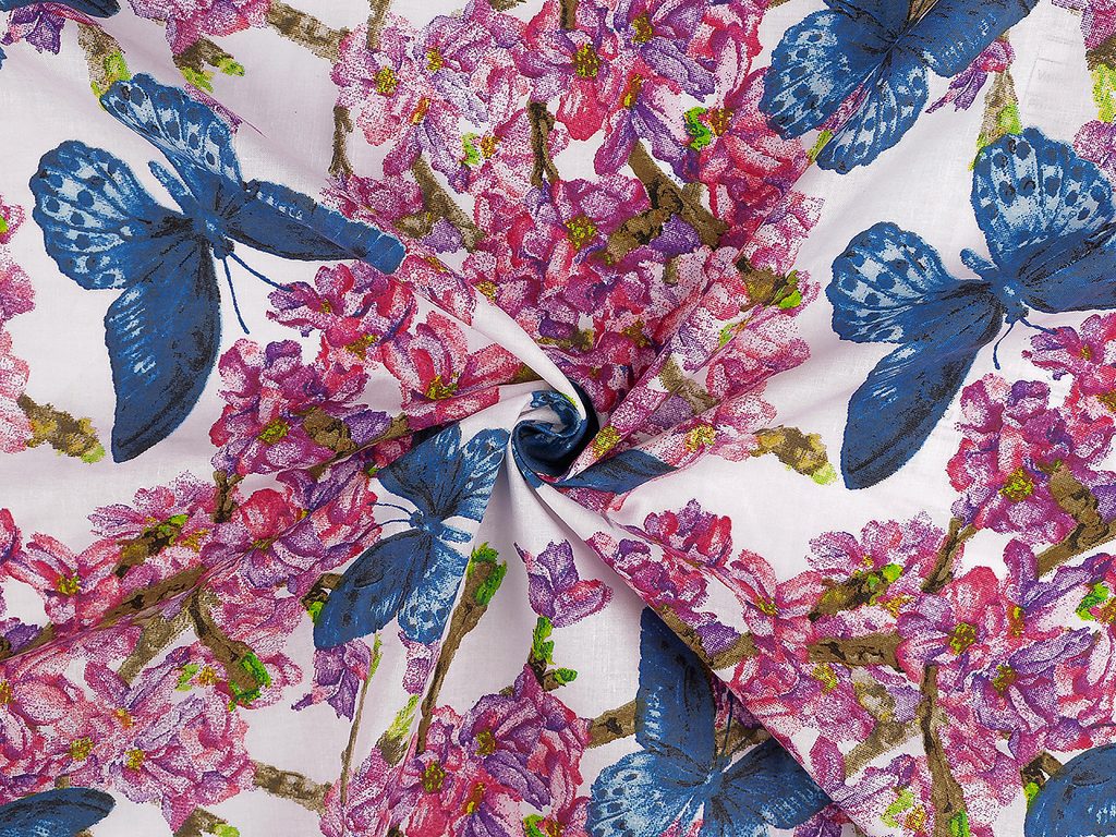 Bavlněná látka / plátno květy / motýli šíře 220 cm