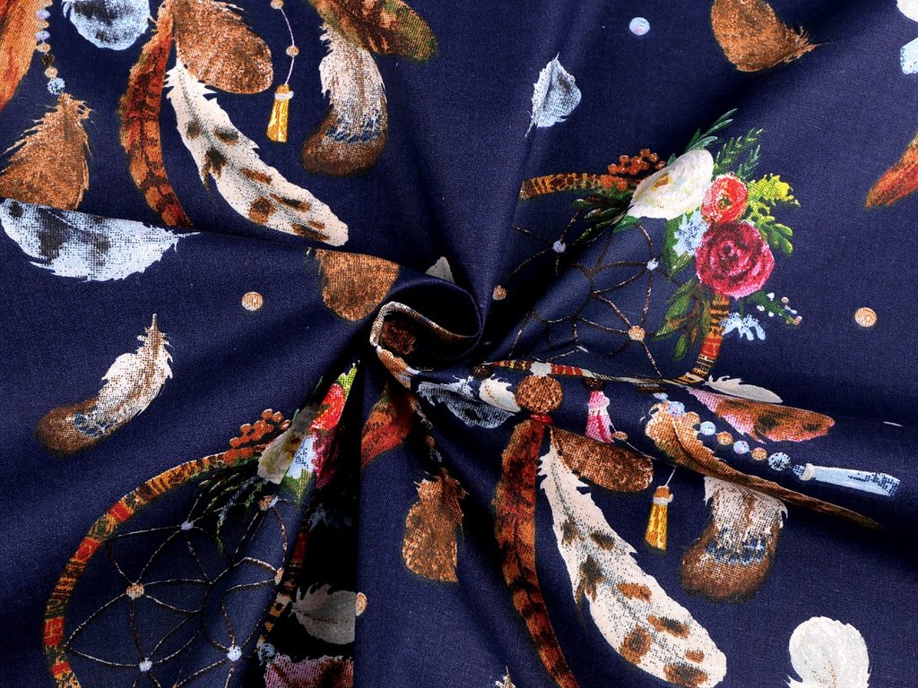 Bavlněná látka „lapač snů“ – metráž je krásné plátno z kvalitní bavlny, které kombinuje jemný dekor s praktickým využitím. Je ideální na šití bytového i dětského textilu.