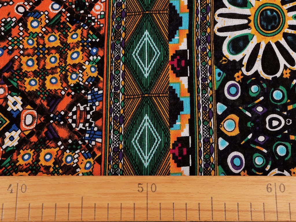 Objevte bavlněné plátno s řidší vazbou a výrazným etno motivem, které díky lehce otevřenější struktuře tkání působí měkčeji na dotek a výborně se hodí pro všestranné použití. Šíře 150 cm a gramáž 130 g/m² zaručují dostatečnou pevnost při zachování komfortní hřejivosti a prodyšnosti, což oceníte především při šití šatů, sukní, šátků či plédů