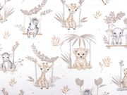 Bavlněné plátno zdobí potisk roztomilých zvířátek ze safari.
