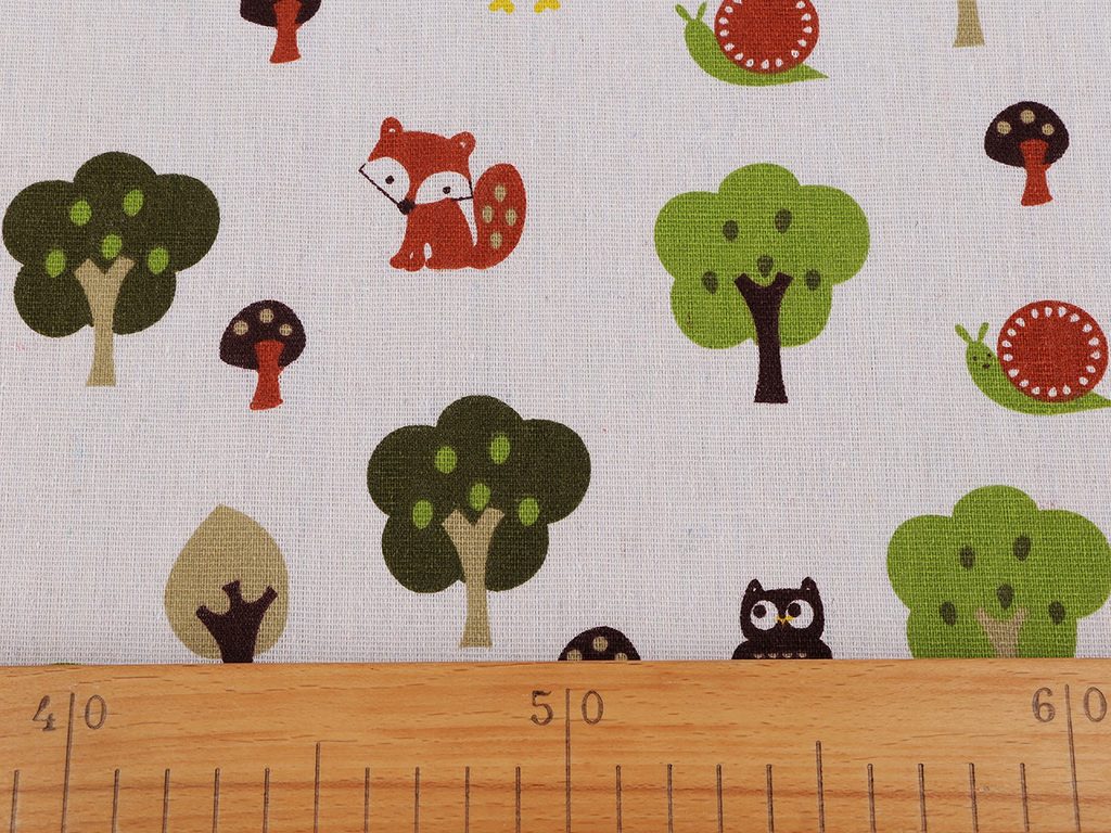 Bavlněná metráž / imitace lnu hrubší lesní zvířátka METRÁŽ