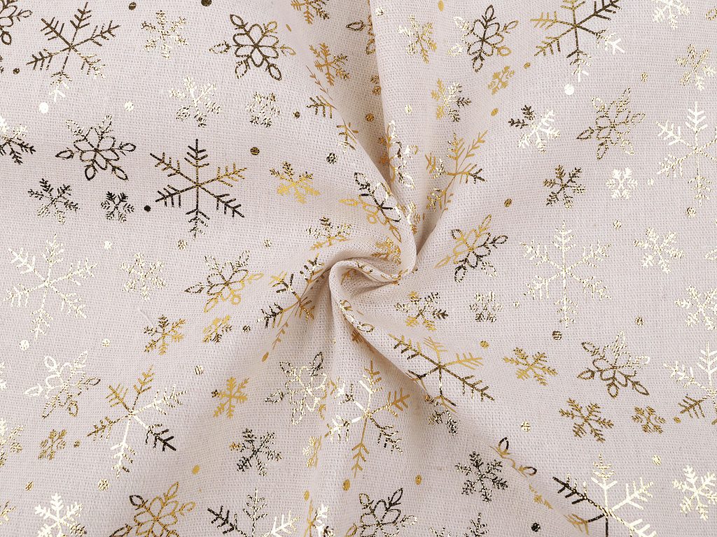 Vánoční bavlněná - imitace lnu sněhové vločky metalické METRÁŽ