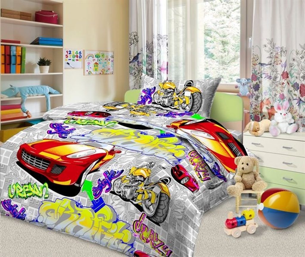Bavlněné ložní povlečení - Auta bílá