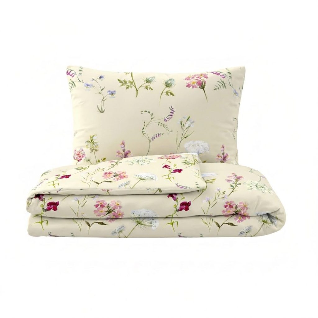 Ložní povlečení z kolekce DELUX je vyrobeno z velmi jemné tkaniny s vysokou hustotou jemných přízí. Klasické bavlněné povlečení BOTANICA smetanová zdobí motiv lučních kvítků na smetanovém podkladu.