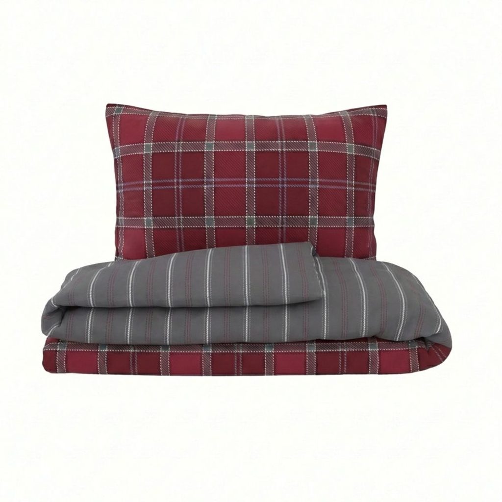 Ložní povlečení je vyrobeno z velmi jemné tkaniny s vysokou hustotou jemných přízí. Bavlněné povlečení CAMPUS šedé zdobí nestárnoucí motiv proužků a kostek v kombinaci šedé a červené.