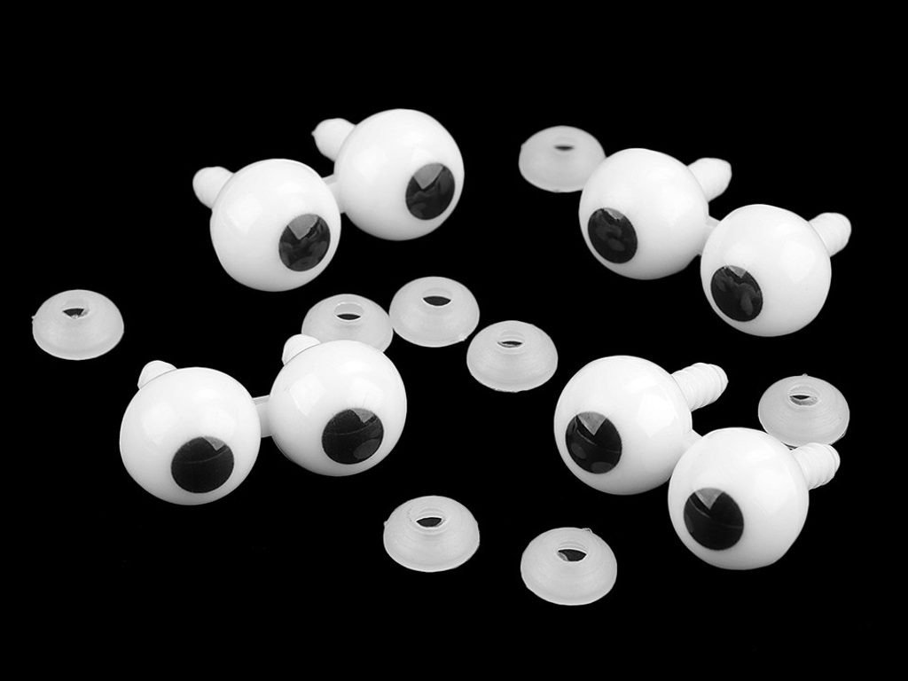 3D plastové oči v páru mají téměř kulatý tvar. Využijete je na výrobu nejrůznějších postaviček či zvířátek. Jsou uprostřed spojené, nelze je od sebe oddělit. Díky 3D tvaru kuličky jim můžete vytvořit víčka například obháčkováním nebo obšitím, hodí se pro tvarované tváře.