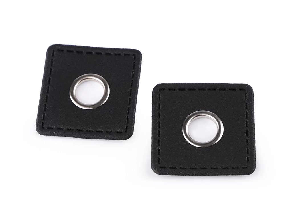 Průchodka s koženkovým čtverečkem k našití, průvlek 10 mm 4 kusy