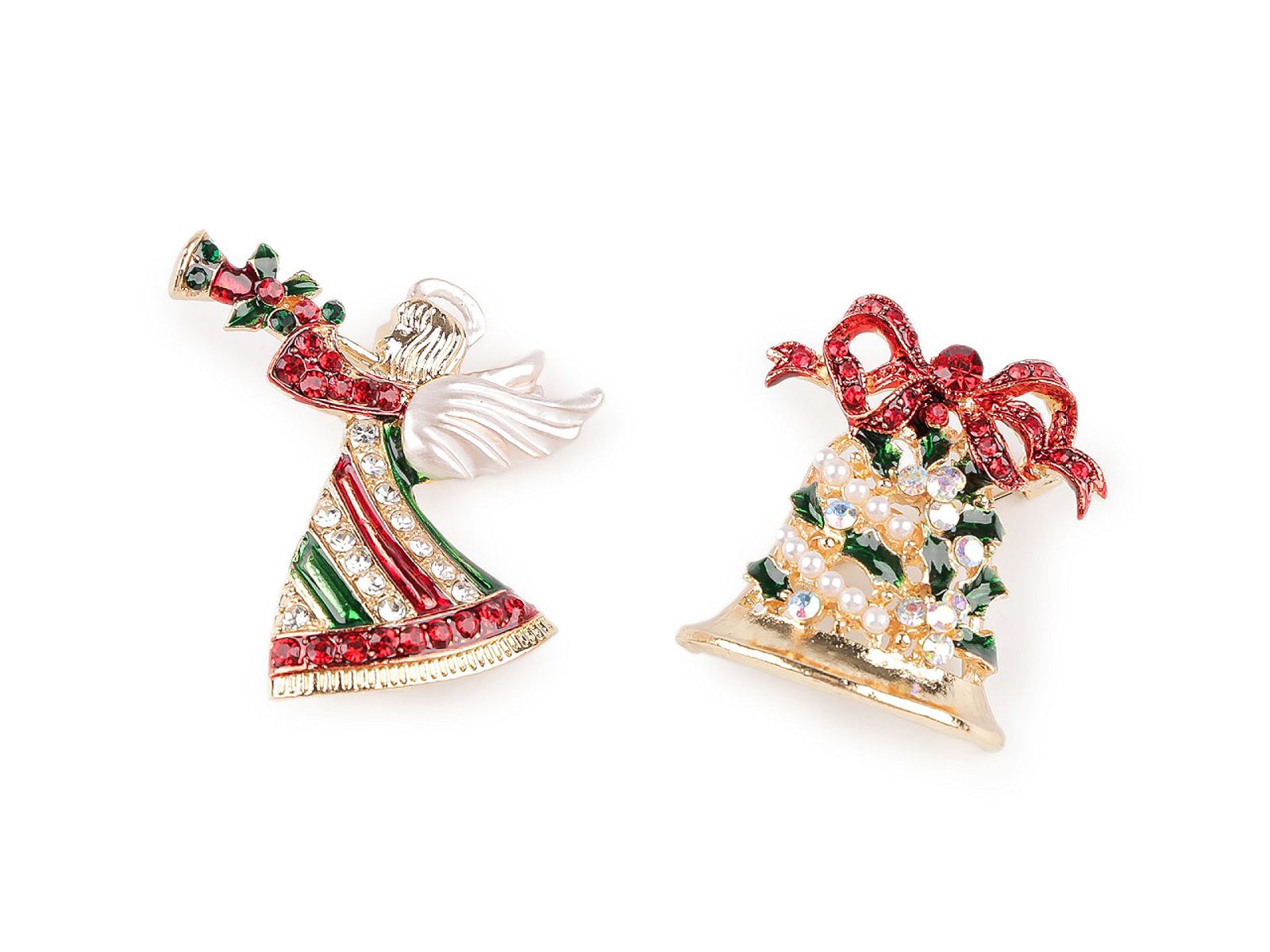 Brož s broušenými kamínky anděl, zvonek