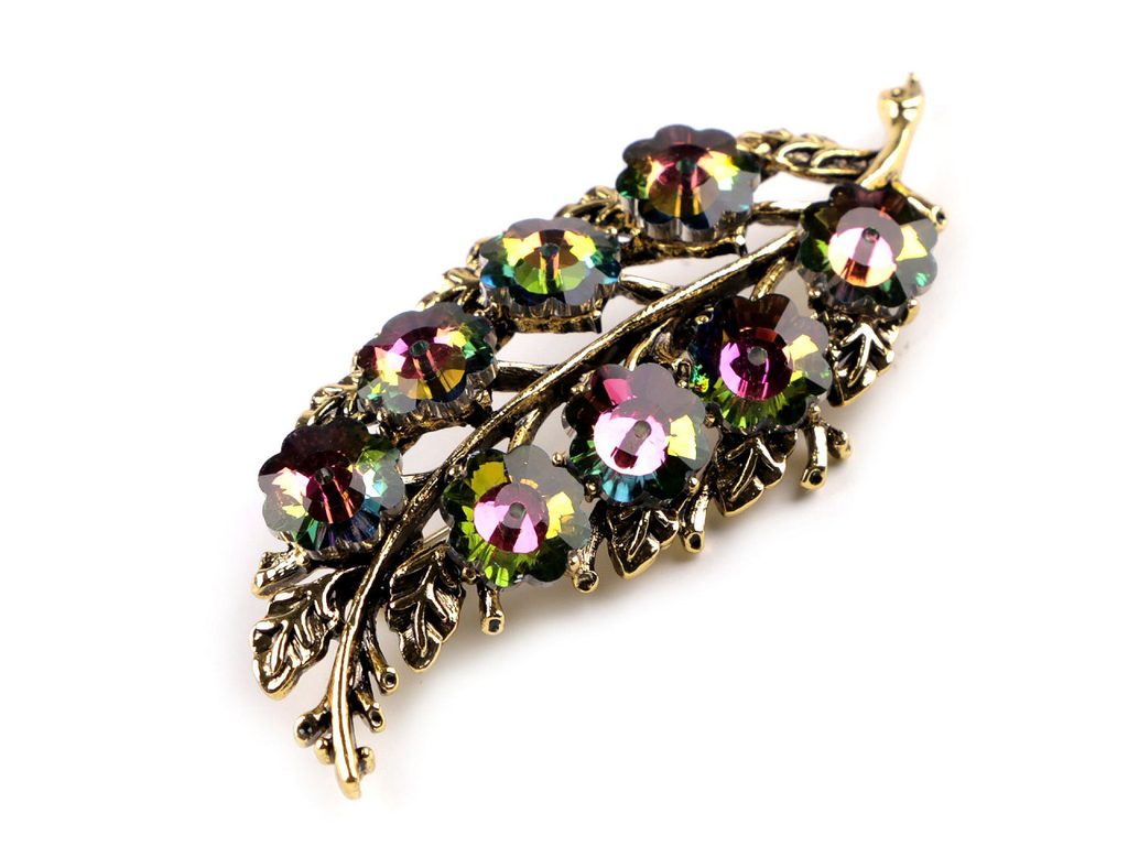 Brož s broušenými kamínky list