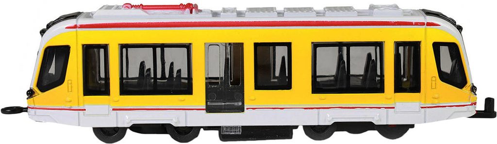 Tramvaj žlutá kovová MHD Městská hromadná doprava zpětný chod