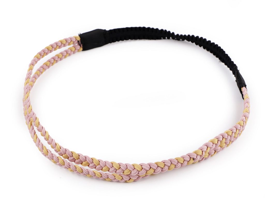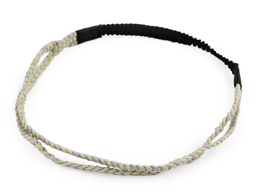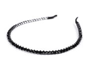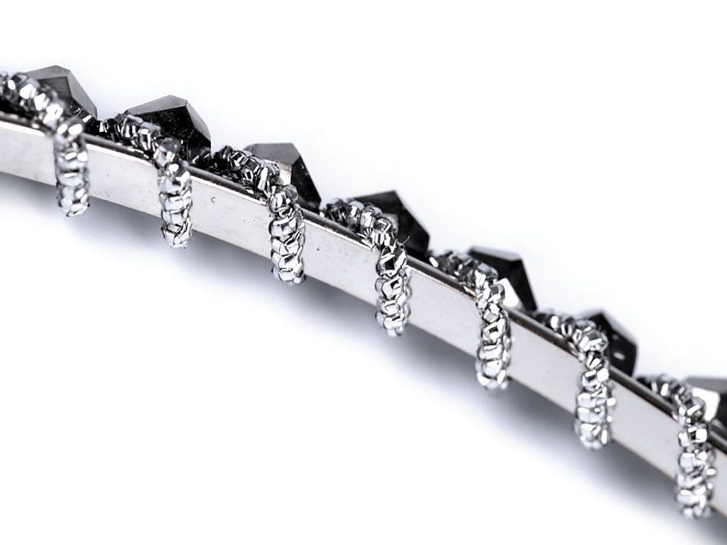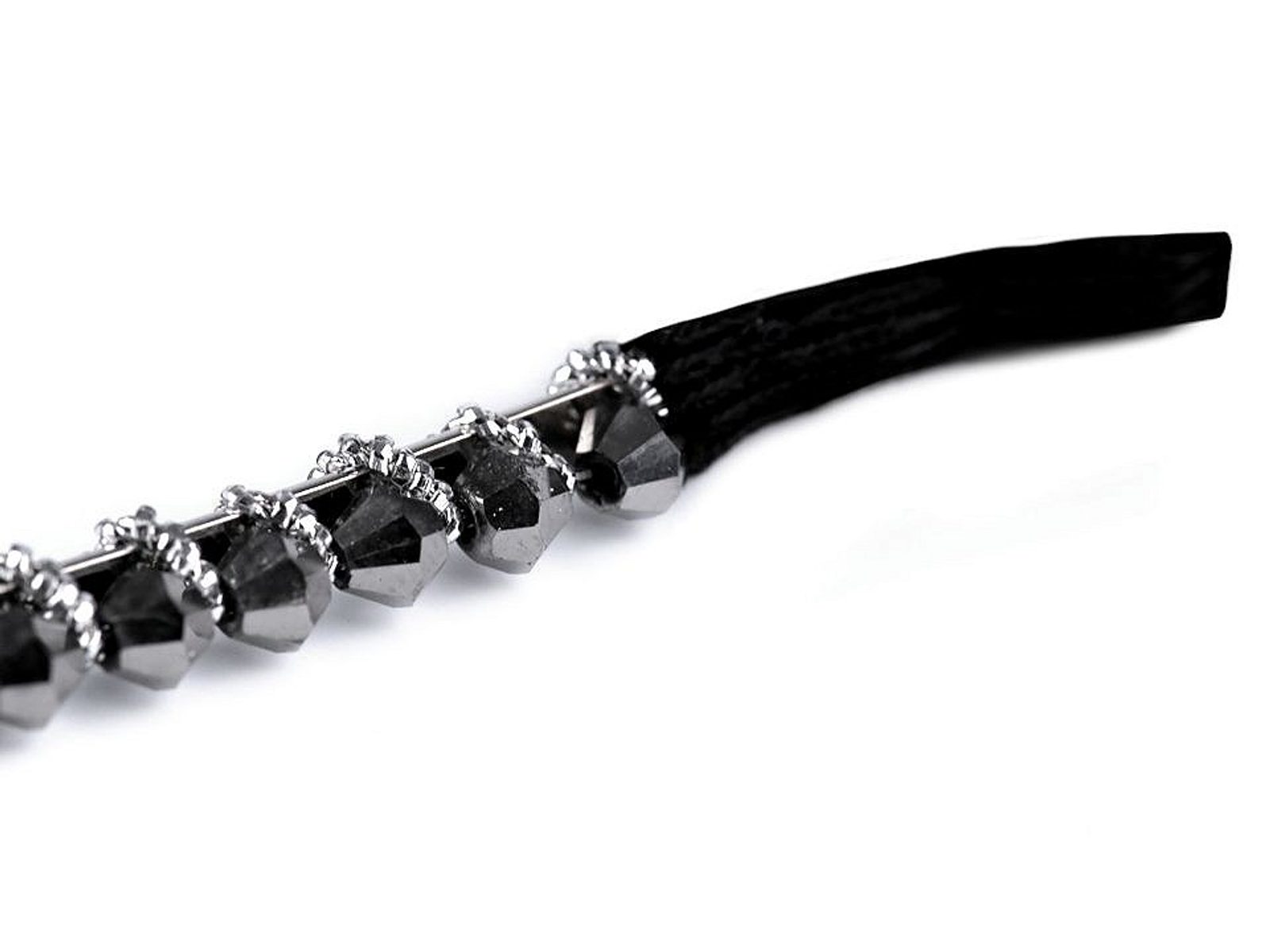 Na kovovém základu širokém 3 mm jsou lurexovým provázkem pevně připevněné skleněné korálky s půvabným leskem. Díky lurexu se čelenka jemně třpytí.