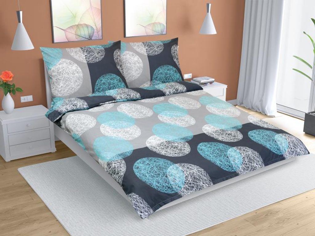 Povlečení bavlna na dvoudeku Tyrkysová,Šedá 90/564