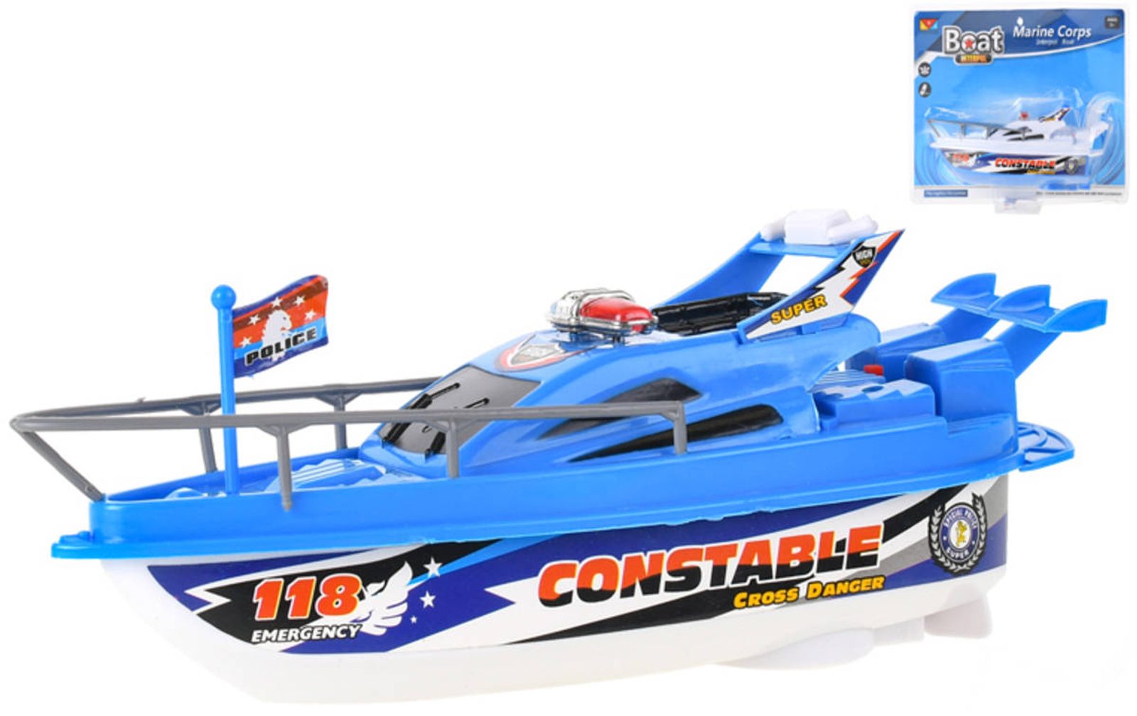 Člun policejní pátrací 22cm do vody na baterie 2 barvy plast