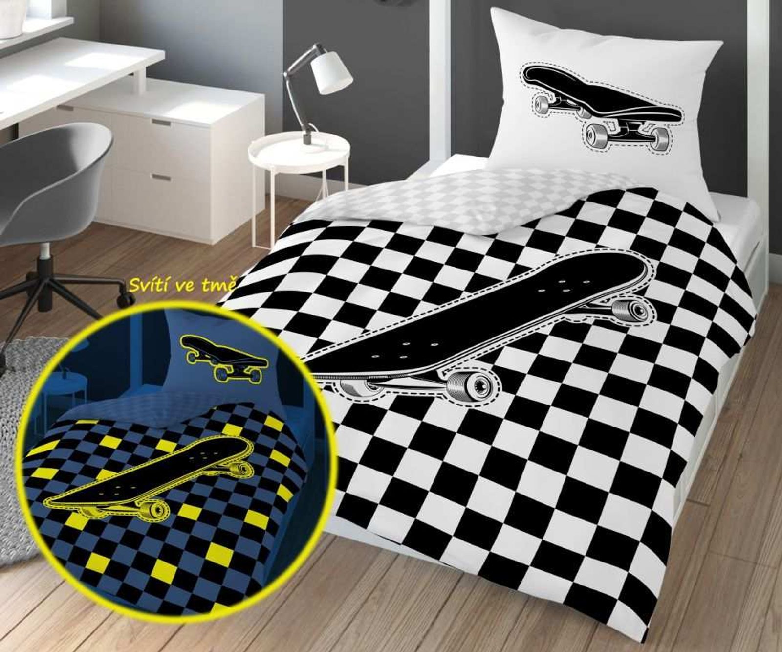 DETEXPOL Povlečení Skate svítící Bavlna, 140/200, 70/80 cm