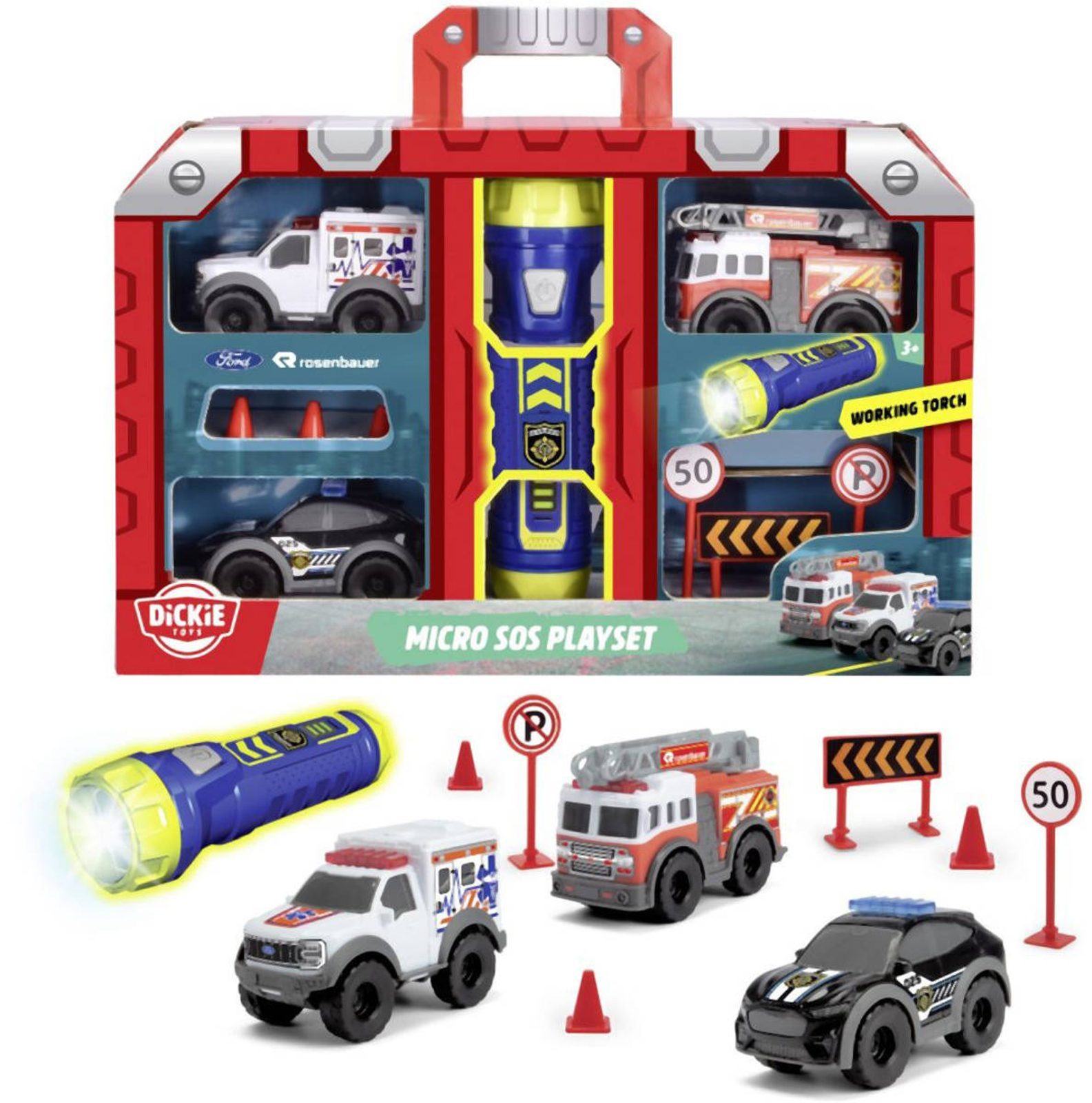 DICKIE Mikro záchranářská vozidla 3ks s baterkou a doplňky na baterie Světlo