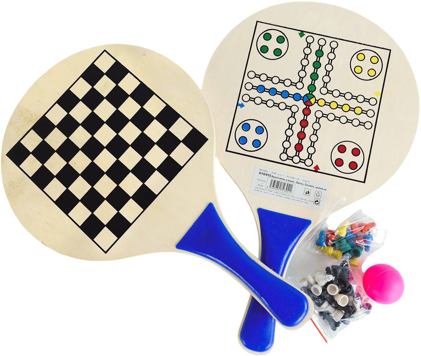 DŘEVO Soubor her Plážový soft tenis / Šachy / Dáma / Člověče, nezlob se! 4v1