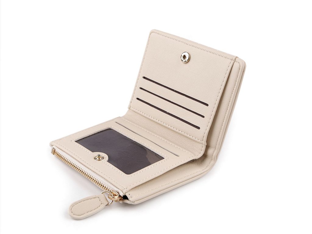 Přední strana peněženky se zapíná na patent. Uvnitř najdete 6 přihrádek na kreditní karty, z toho 1 má průhledné okýnko. Je zde umístěná i přihrádka na bankovky. Kapsičku na mince najdete na boku peněženky, zapíná se na zip.