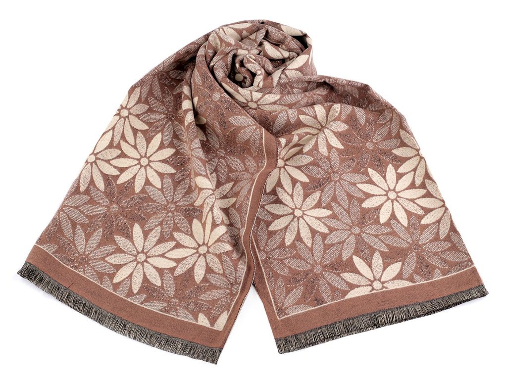 Šátek / šála typu kašmír s třásněmi, květy 60x180 cm