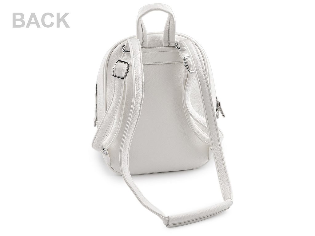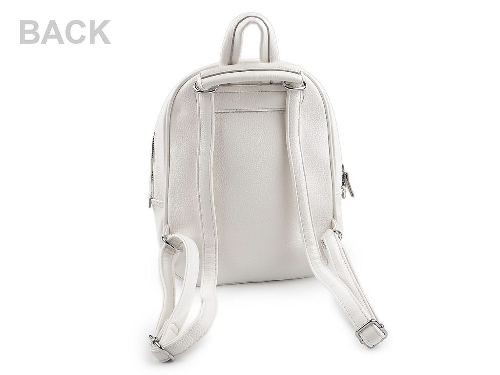 Hlavní kapsa je na zip, je velice prostorná. Uvnitř má kapsičku na zip na drobnosti či mobil a kapsu na uložení plochých předmětů. Na přední straně batohu je další kapsa na zip. Ucho je pevné, krátké do ruky či na pověšení. Popruhy jsou dostatečně dlouhé s možností regulace pro pohodlné užívání během celého dne. Nahoře jsou popruhy v kovových průvlecích, které slouží na protáhnutí popruhů na nošení křížem jako crossbody kabelka.
