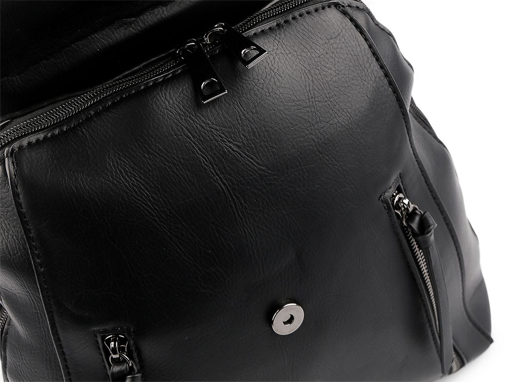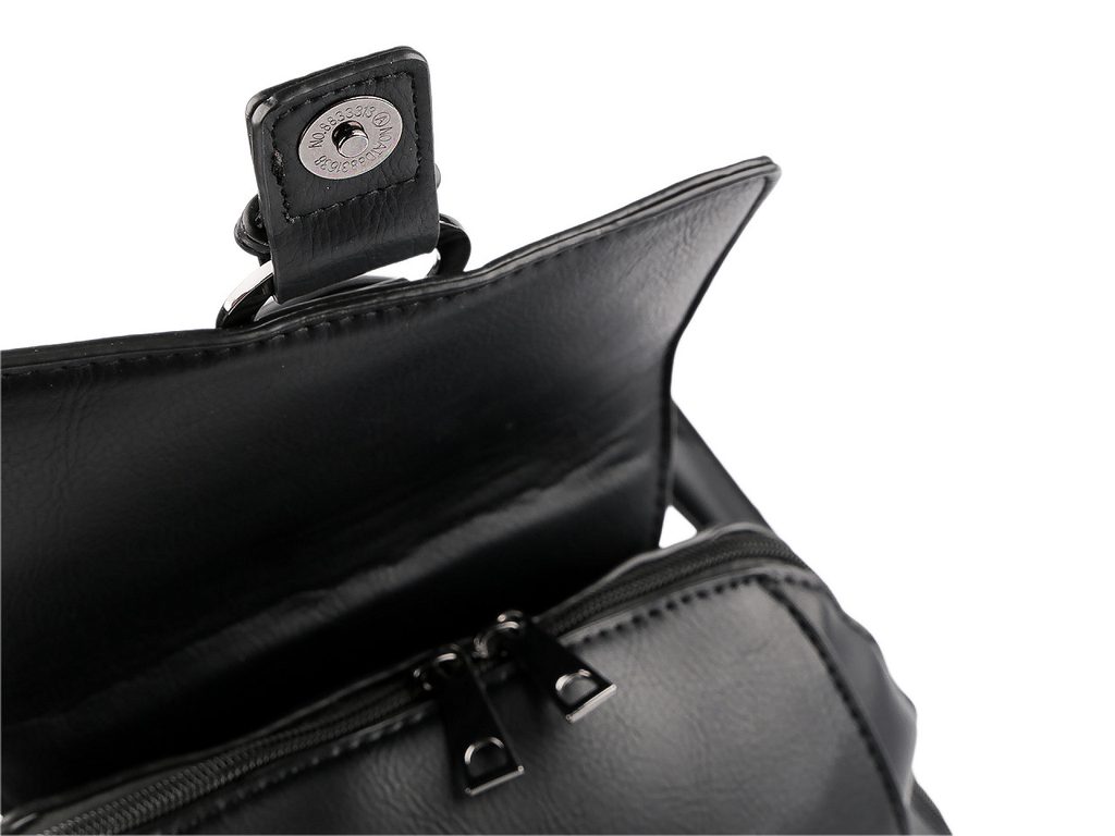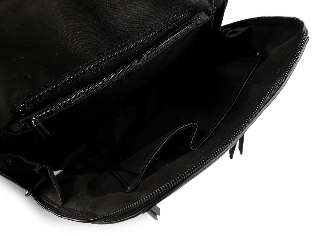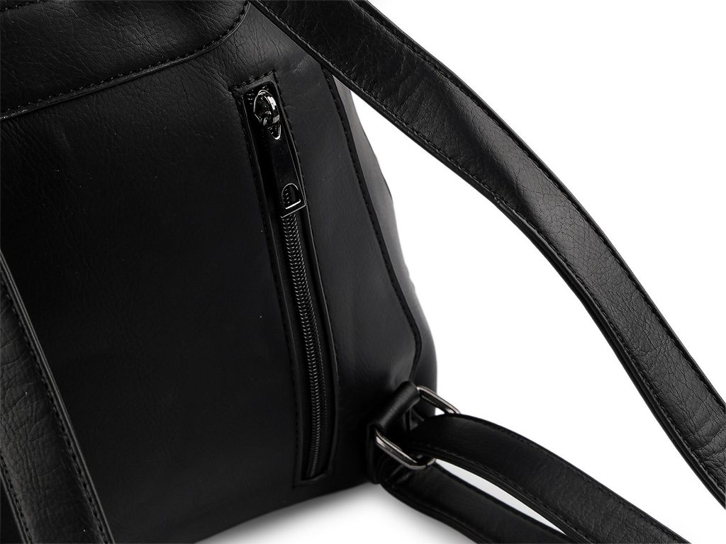 Hlavní kapsa je krytá klopou s magnetickým zapínáním. Pod ní se zapíná na zip, je velice prostorná. Je rozdělená přepážkou na dva oddíly, v přepážce je umístěná kapsa na zip. Nechybí ani vnitřní kapsička na zip na drobnosti či mobil a kapsa na uložení plochých předmětů. Na přední straně batohu jsou 2 menší ploché kapsy na zip. Na zadní straně batohu je umístěná malá plochá kapsa na zip. Ucho je pevné, krátké do ruky či na pověšení. Popruhy jsou dostatečně dlouhé s možností regulace pro pohodlné užívání během celého dne. Nahoře jsou popruhy v kovových průvlecích, které slouží na protáhnutí popruhů na nošení křížem jako crossbody kabelka.