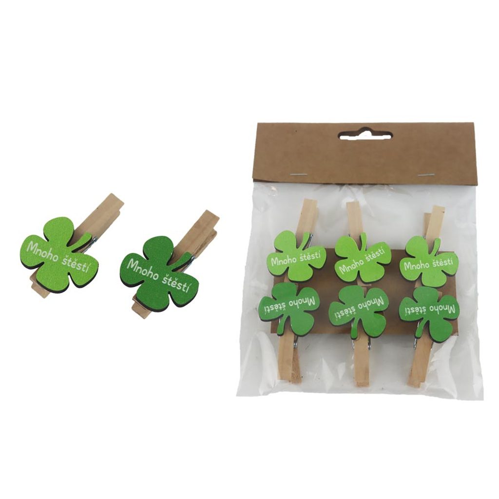 Dekorační klip čtyřlístek, 6 ks D6405 - 4,6 cm