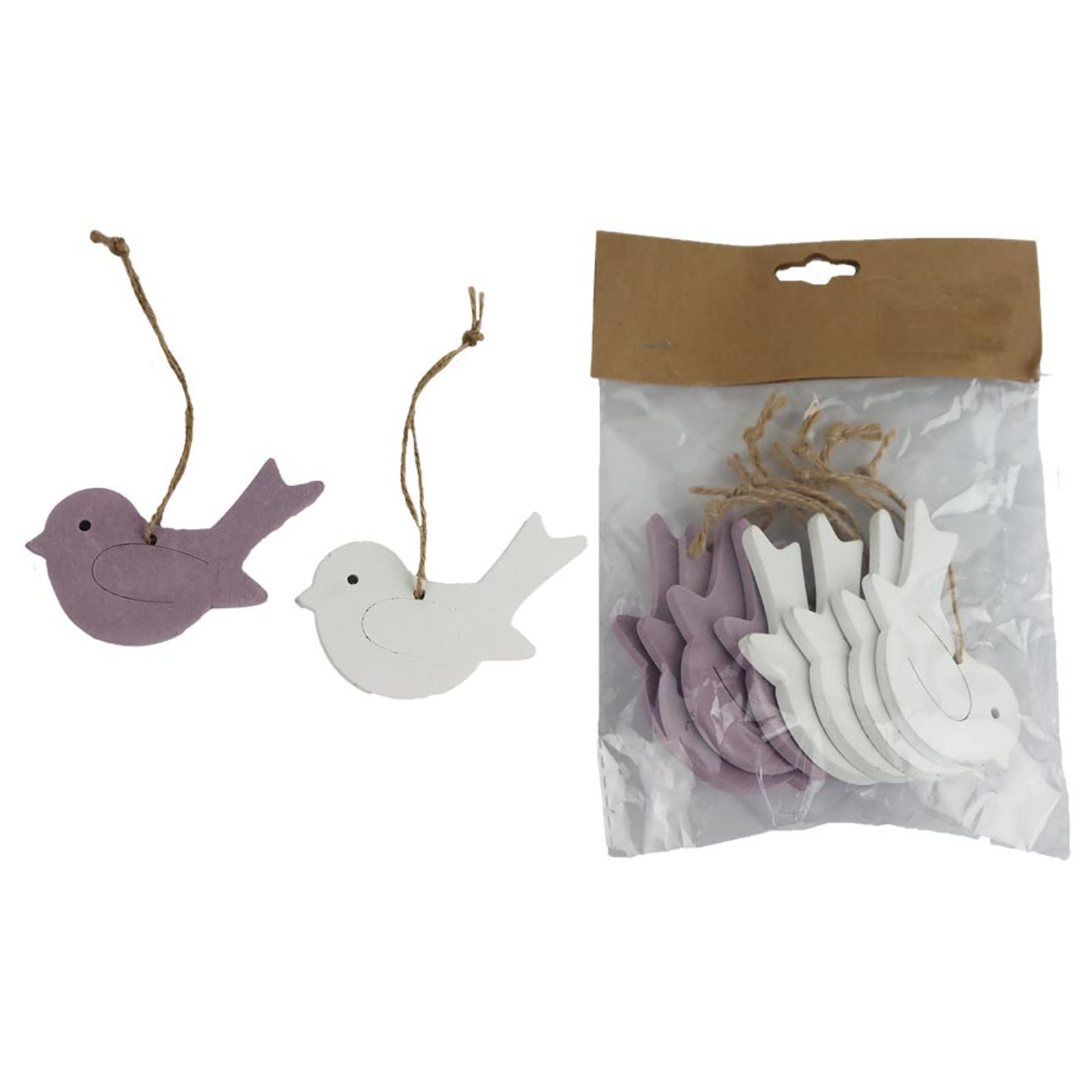 Dekorační ptáčci 8 ks – přírodní dřevěné ozdoby (D6240) - 7 cm