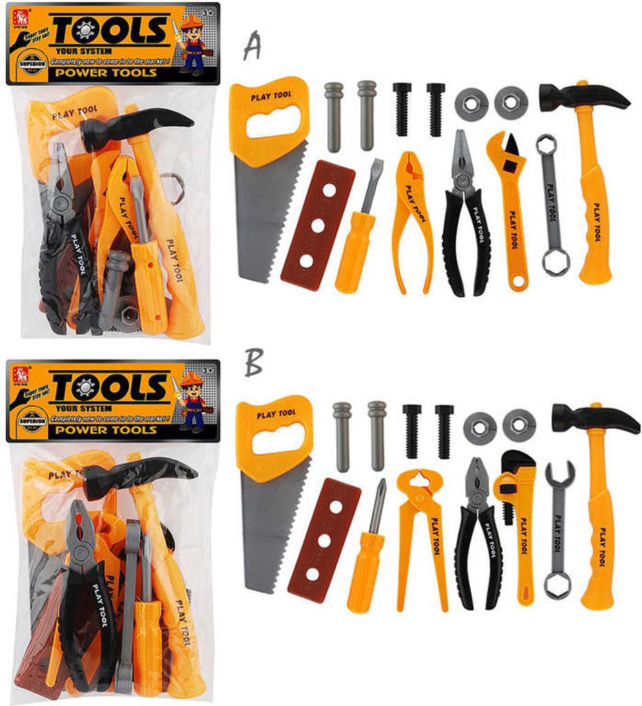 Dětské pracovní nářadí 14ks malý kutil set s pilkou a kladivem 2 druhy v sáčku ▶