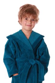 Dětský župan Tampa petrolejová – kapuce, dvě kapsy, velikosti 104-152 ▶