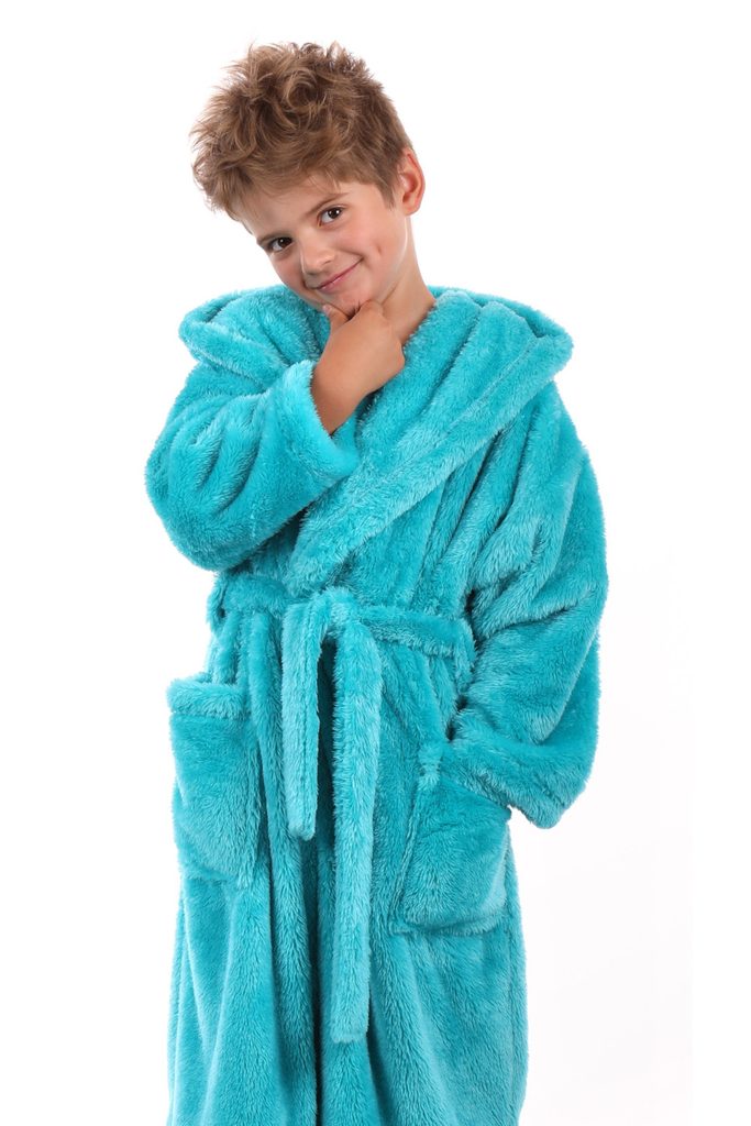 Dětský župan s kapucí huňatý tyrkysový ▶