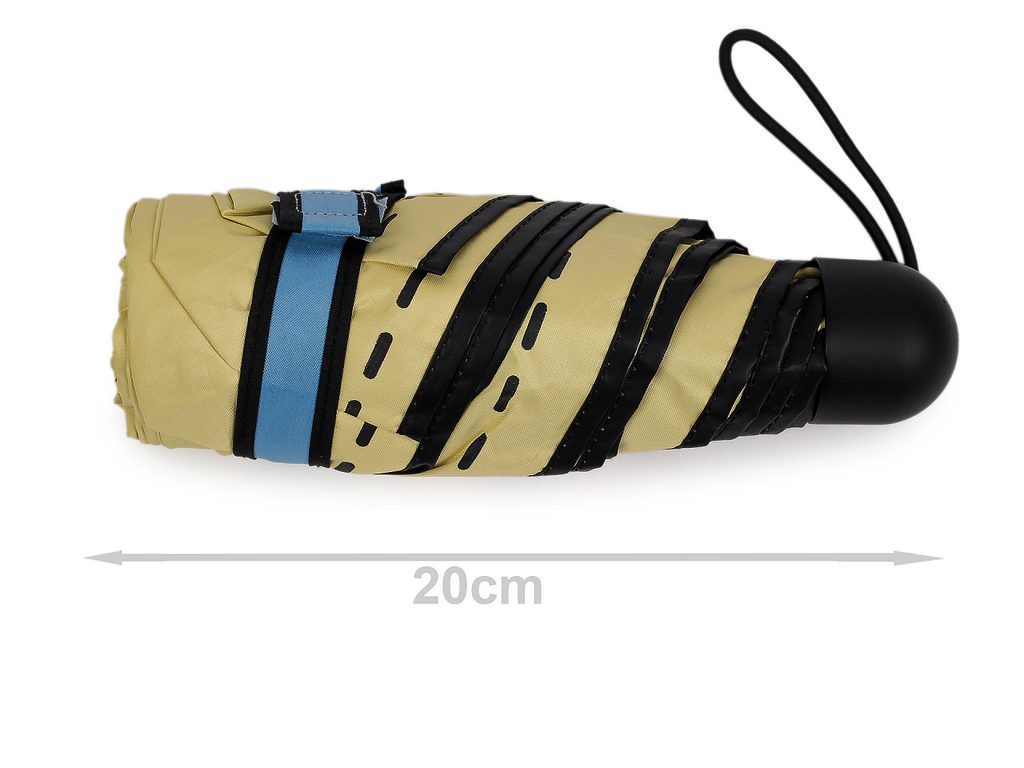 Konstrukce je tvořena šesti poli. Rukojeť deštníku je plastová a opatřená poutkem. UV filtr vás ochrání před slunečním zářením, dolní strana potahu je černá. Zapínání je klasické na suchý zip.
