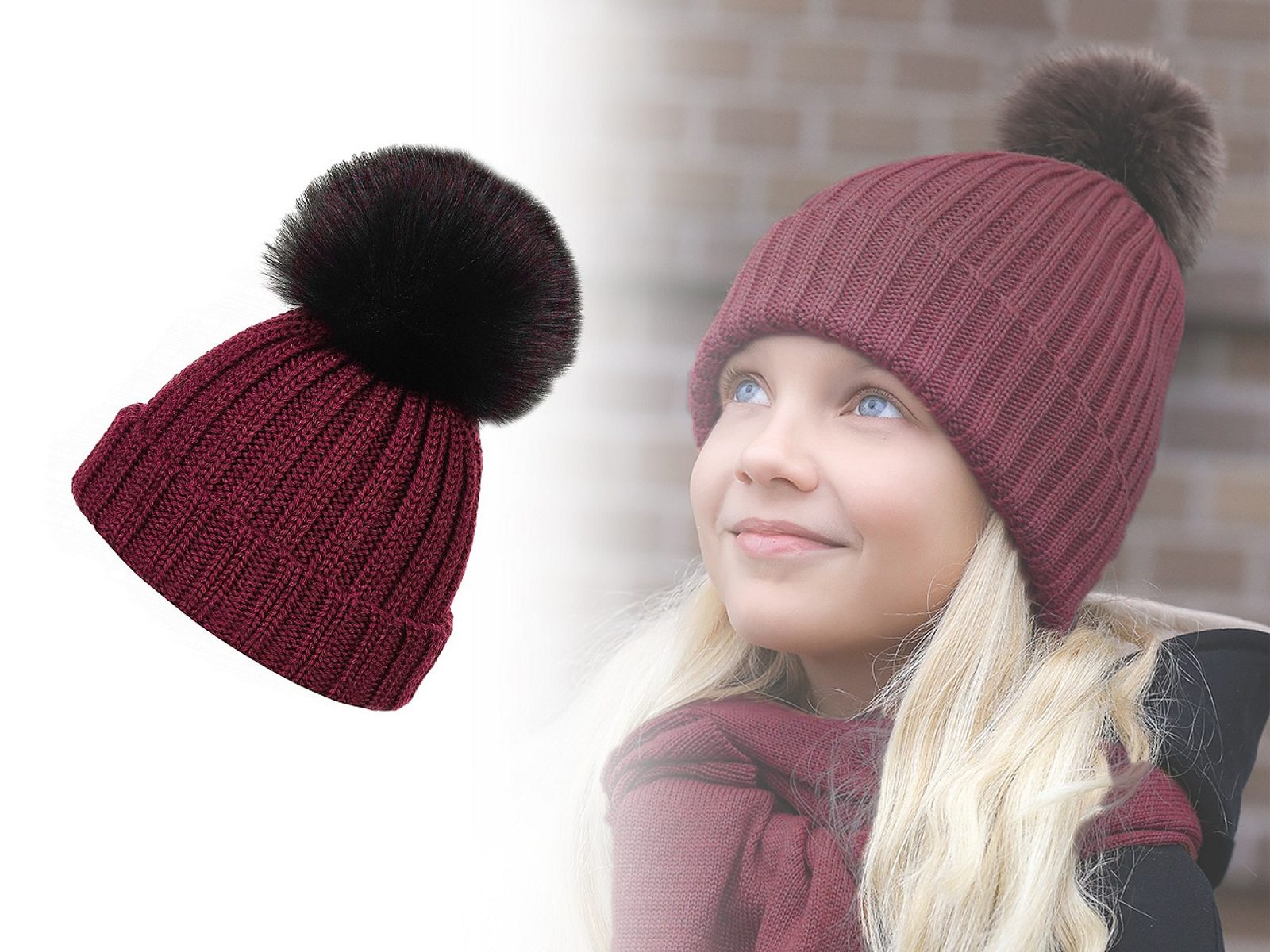 Dívčí zimní čepice s bambulí