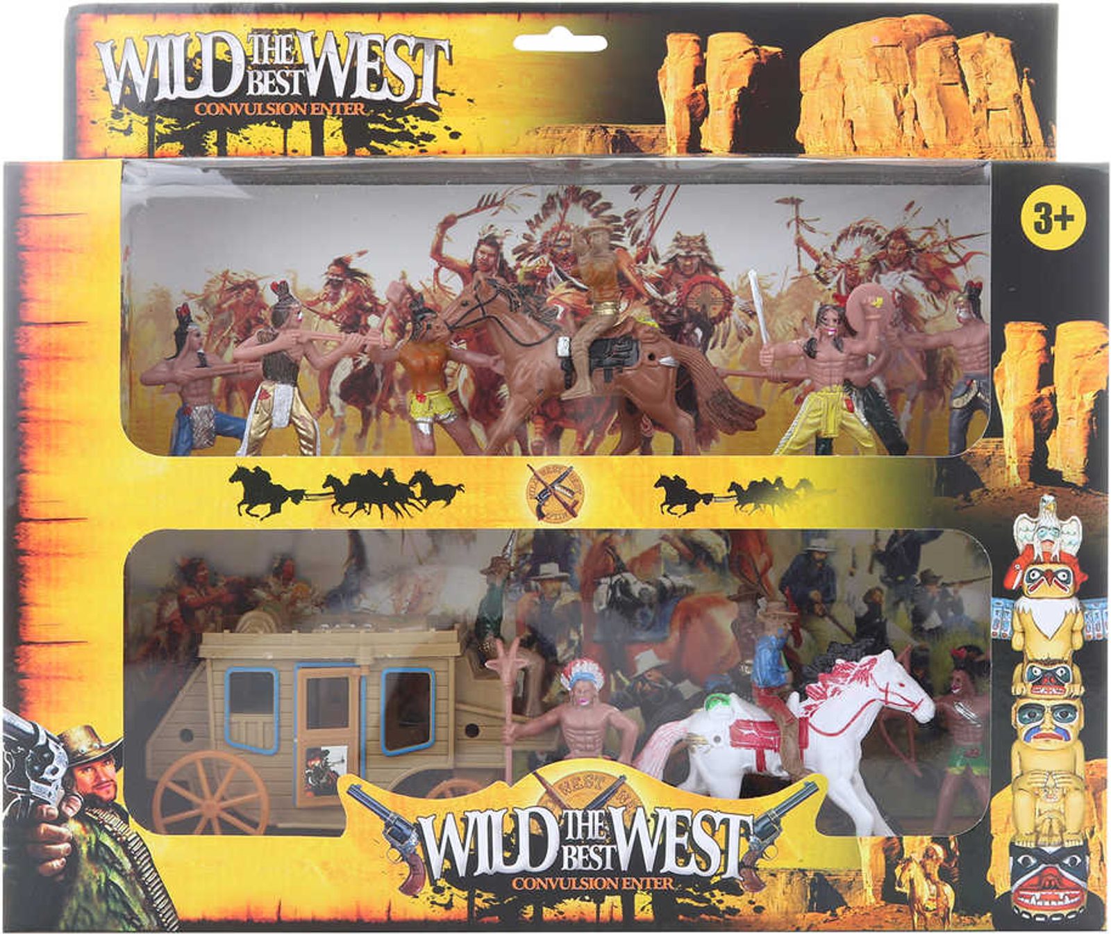 Divoký západ westernový set kočár se 3 koni a indiány plast v krabici