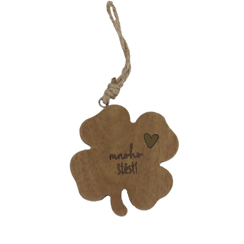 Dřevěná dekorace čtyřlístek D7683 - 7×7×0.8 cm ▶