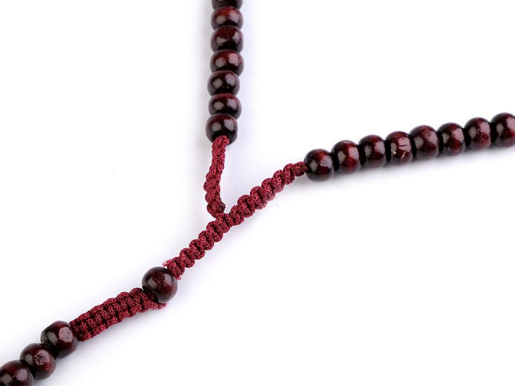 Růženec dřevěný na drhaných šňůrkách je náboženský předmět, který se skládá z dřevěných korálků a kříže
