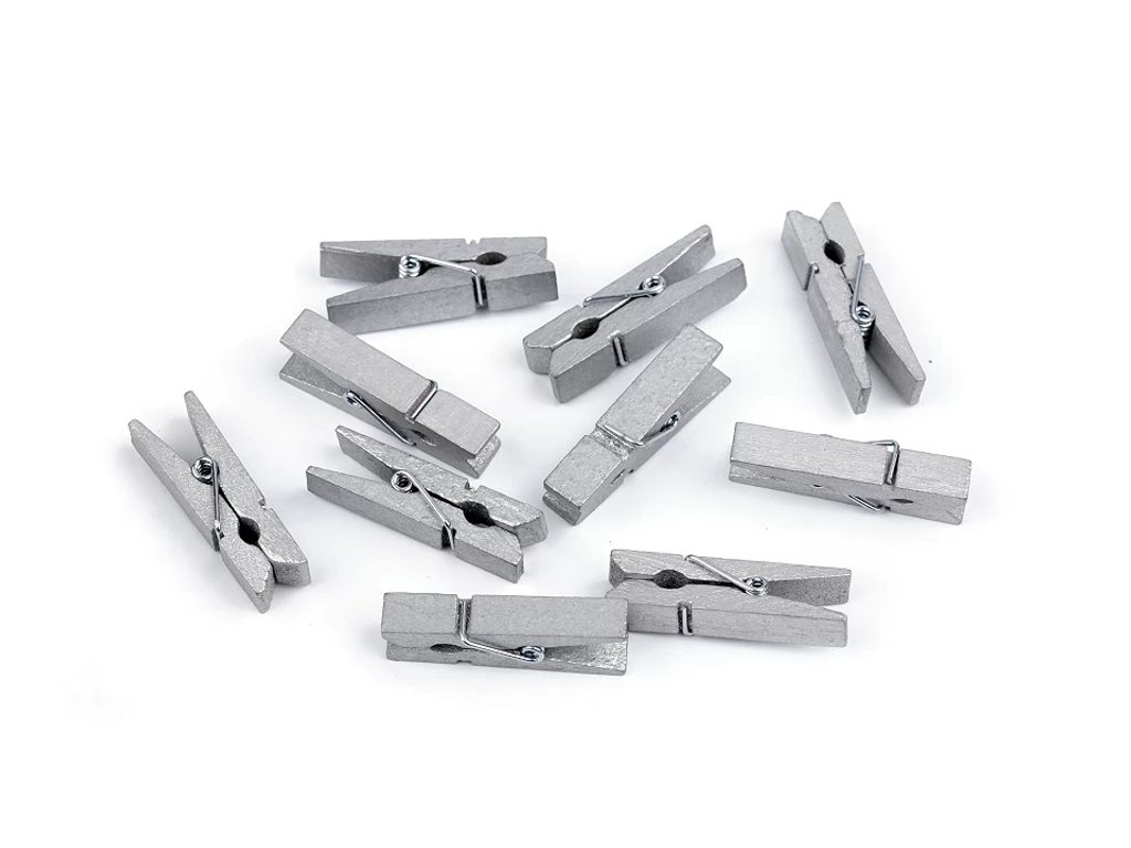 Metalické dřevěné kolíčky využijete na různé dekorace, ke svatebnímu i vánočnímu aranžování, k balení dárků či k uchycení fotografií na provázek.
