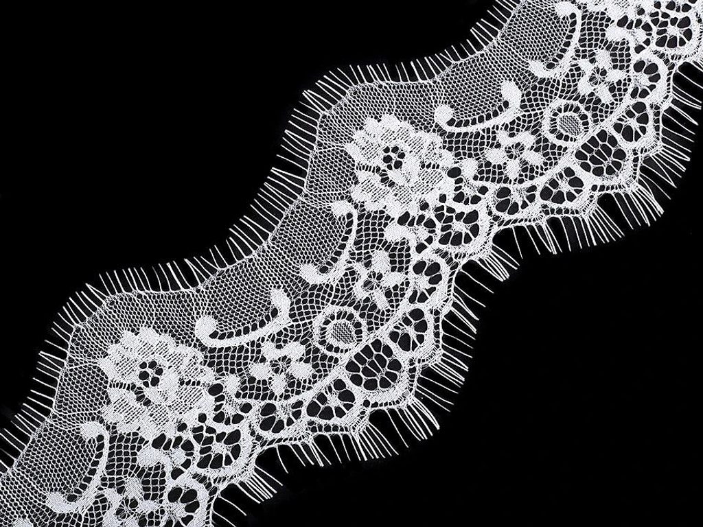 Použití: Krajku využijete na ozdobení společenských i svatebních šatů, halenek, kalhot, sukní i spodního prádla. Vynikne jako efektní lemování.