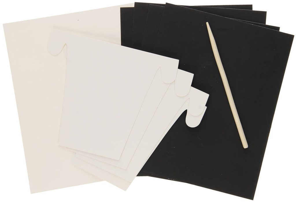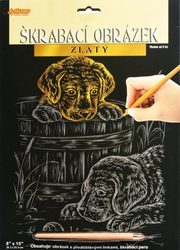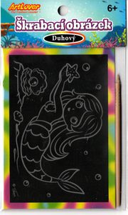 Obsah balení: obrázek s barevnou vrstvou, škrabací pero, zkušební obrázek