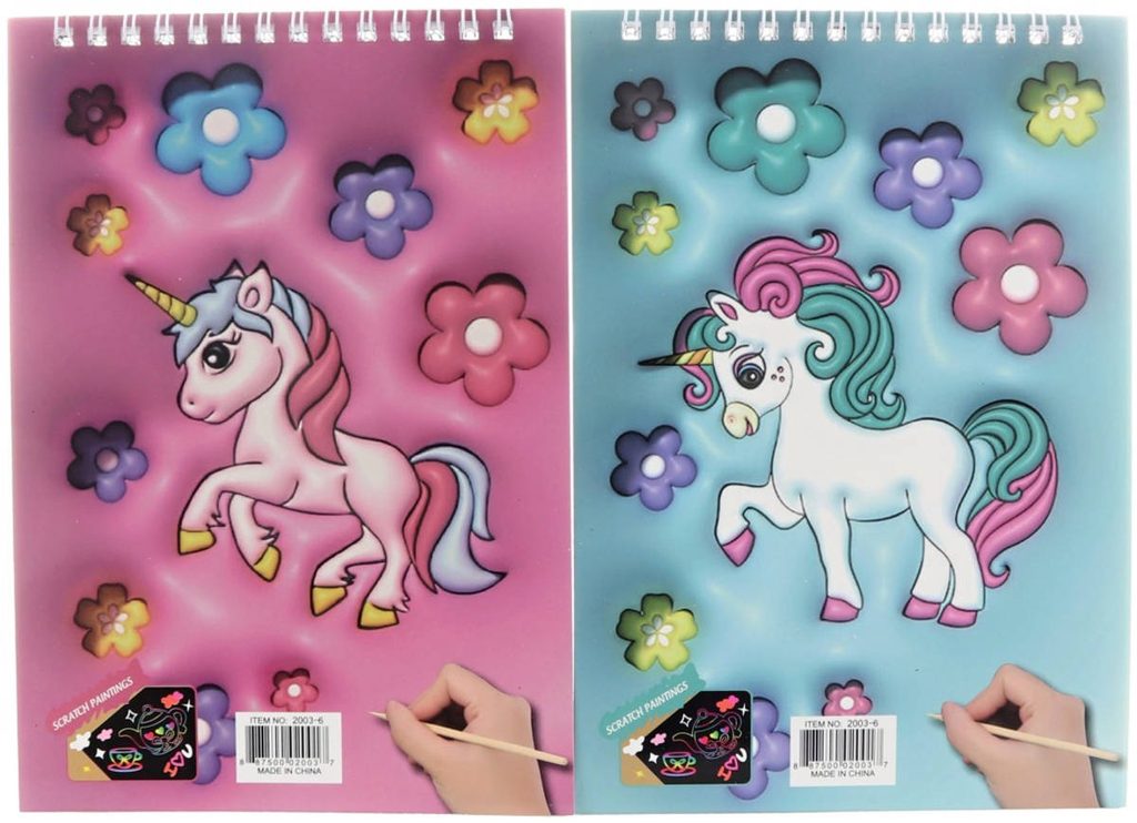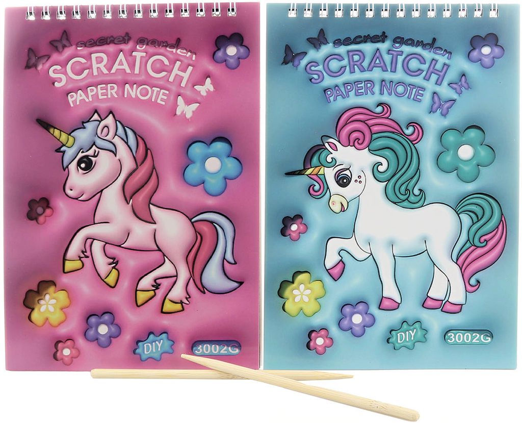 Vyškrabovací obrázky Jednorožec sešit 8 listů s nástrojem 2 druhy