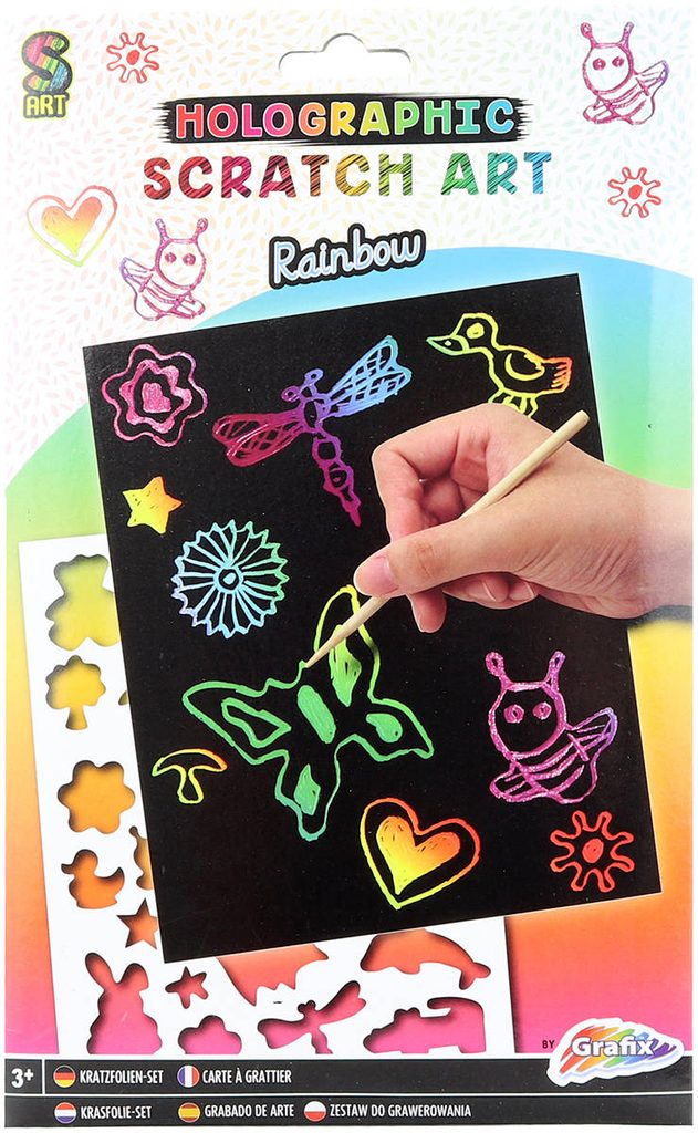 GRAFIX Vyškrabovací obrázky duhové set 4 archy se šablonami a škrabacím perem