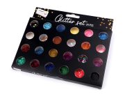 Glitry jsou balené v uzavíratelné plastové dóze o průměru 2,3 cm a výšce 5,7 cm.
