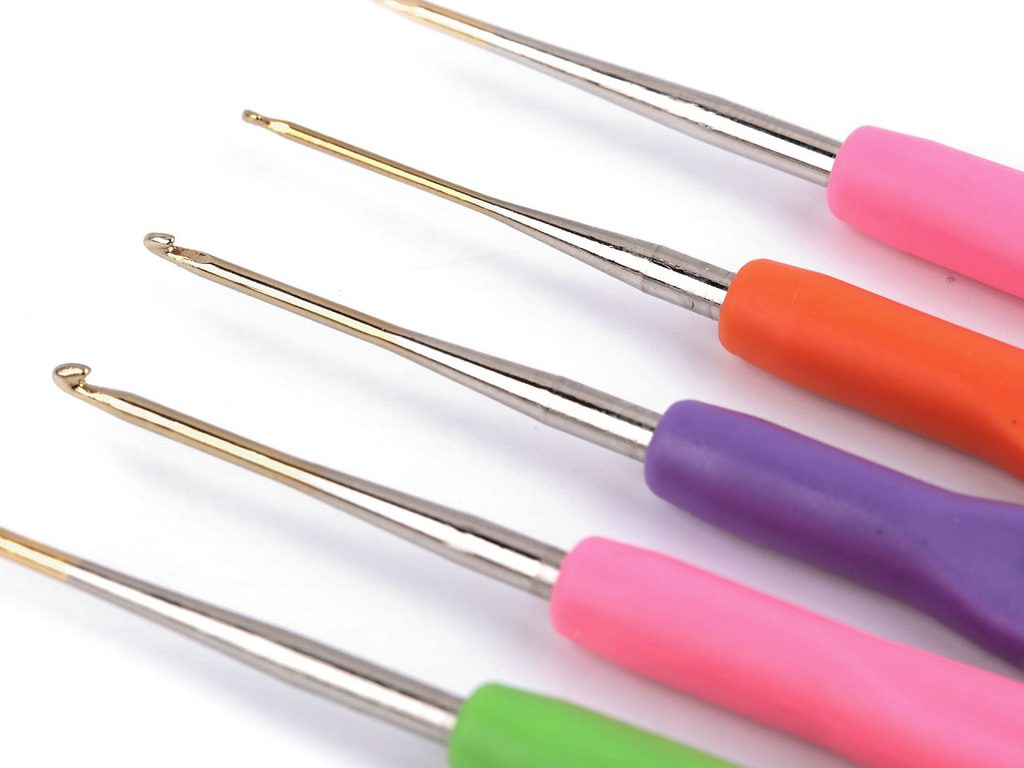 Háček na háčkování se silikonovou rukojetí, zlatá špička vel. 0,5; 0,6; 0,8; 1; 1,25 ▶