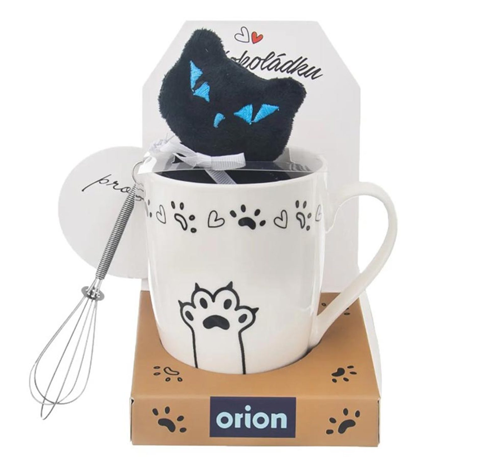 Hrnek keramický + kočka + šlehací metla MAZLÍČCI 0,33 l O0318 - dia 8,2 x 10,5 cm